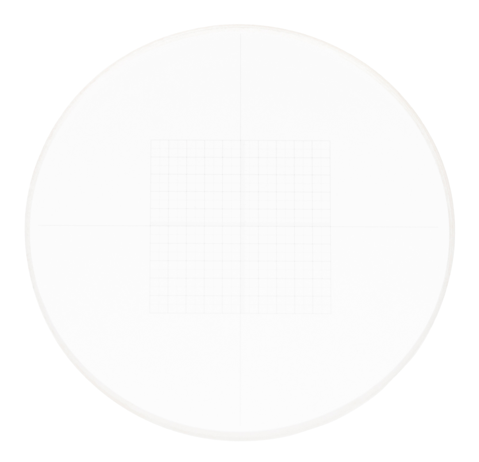 El portaobjetos tiene grabada una retícula de 10x10 mm. En el centro del portaobjetos, hay retículas: dos escalas micrométricas de 200 divisiones. La división de la escala es de 0,05 mm y la longitud de cada escala es de 10 mm.
