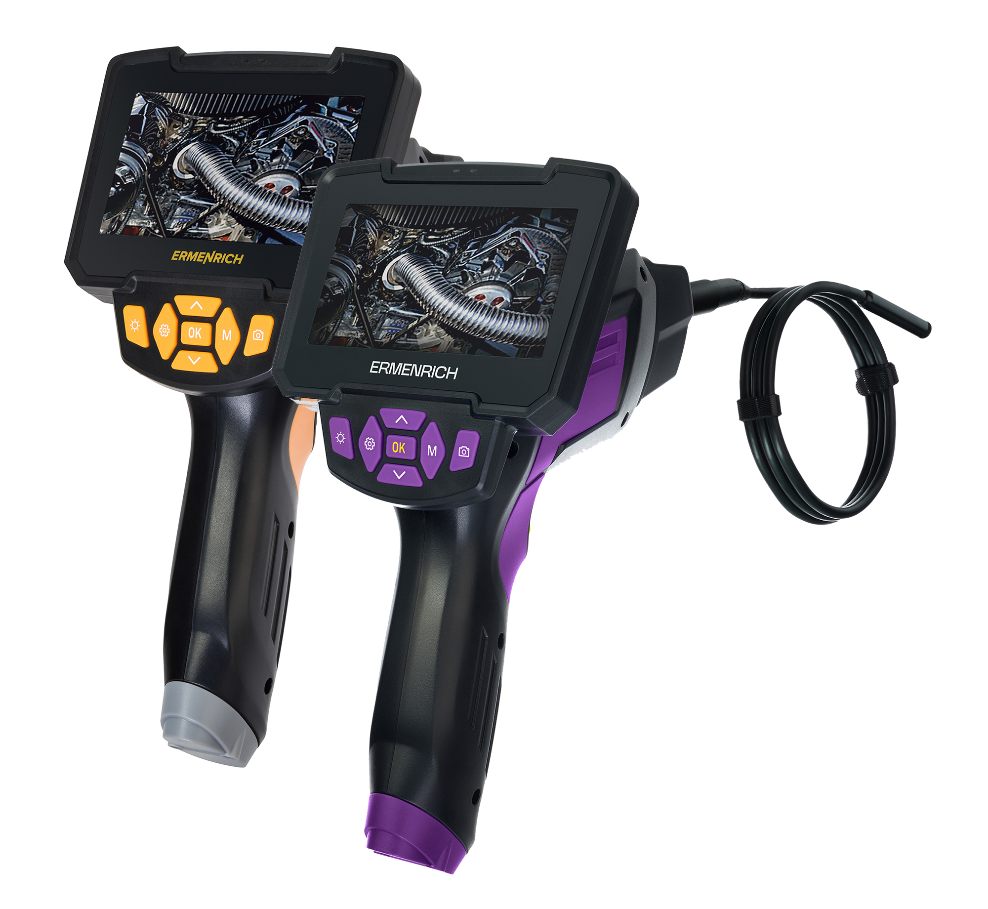 El endoscopio industrial Ermenrich Seek VE40 está diseñado para inspeccionar zonas estrechas en instalaciones, maquinaria y equipos que son de difícil acceso debido a su ubicación. Su funcionalidad permite reparar tuberías, diagnosticar roturas de automóviles, revisar electrodomésticos y estructuras de paredes, inspeccionar vehículos en aduanas, etc. El dispositivo es adecuado para uso doméstico y profesional.