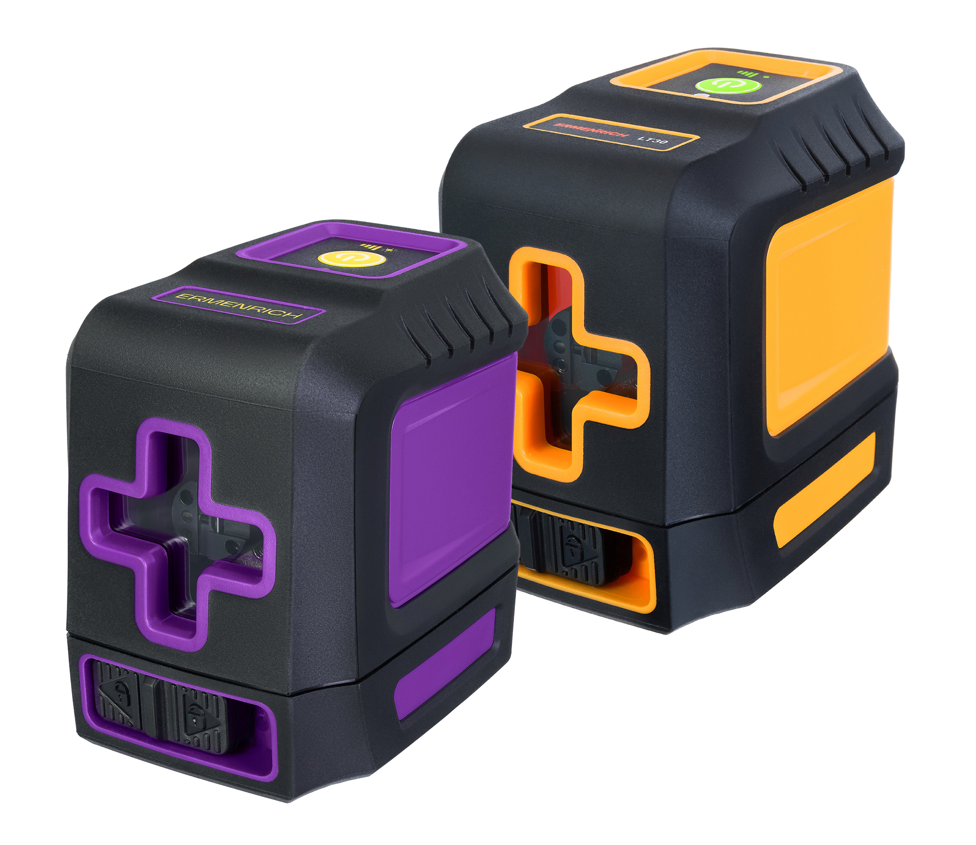 El dispositivo Ermenrich BASE LT30 es un nivel láser con LEDs láser de color verde. Proyecta dos líneas cruzadas para lograr una nivelación eficaz durante los trabajos de pintura, enlucido, alicatado, colocación de placas de yeso y otros acabados. El nivel se puede colocar a una distancia considerable de la superficie sobre la que se proyectan los rayos láser, hasta 30 metros. El barrido horizontal y vertical es de 130°. El dispositivo funciona con un par de pilas estándar. Hay cuatro niveles de brillo disponibles.